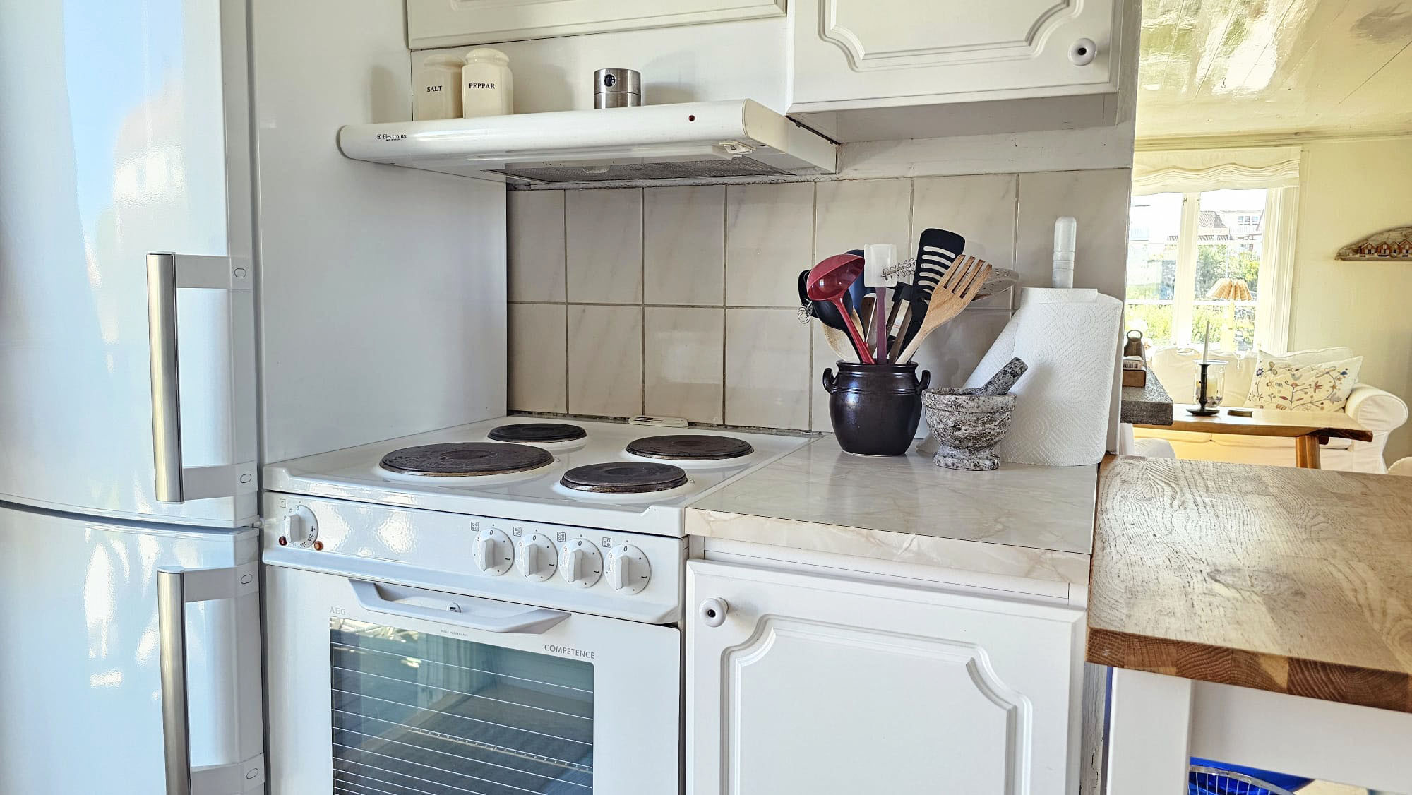 Im Inneren erwarten Sie großzügige, helle Räume in einem gemütlich eingerichteten Zuhause. Die voll ausgestattete Küche bietet: Geschirrspüler, Kühl-/Gefrierschrank, Backofen, Herd, Mikrowelle, Toaster, Kaffeemaschine und Wasserkocher. Wohn- und Essbereich bieten Blick in die Natur, einen Fernseher und Glasfaser-Internet. Es gibt zwei Badezimmer – eines mit Dusche und eines mit Badewanne – sowie eine Waschmaschine.