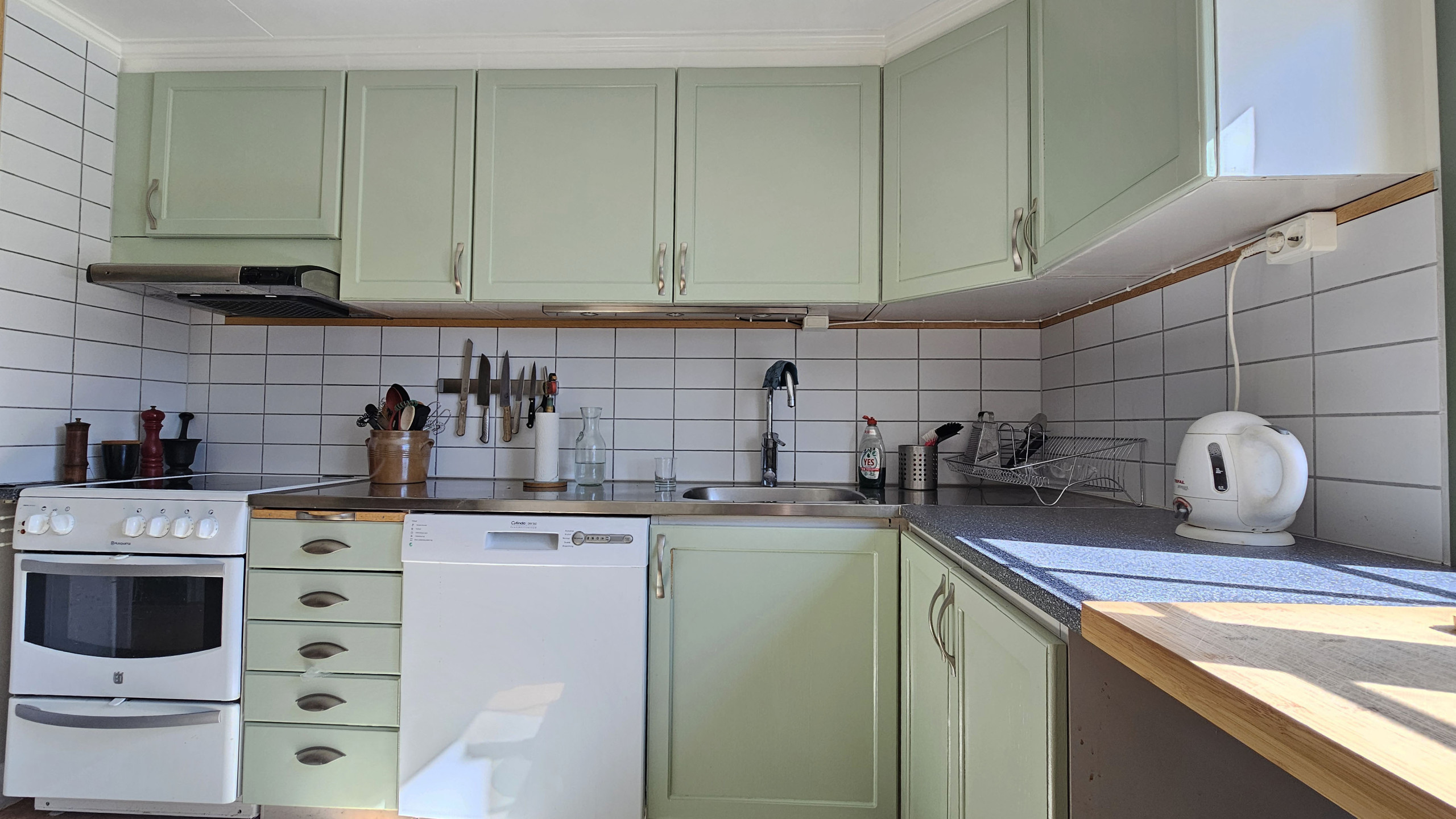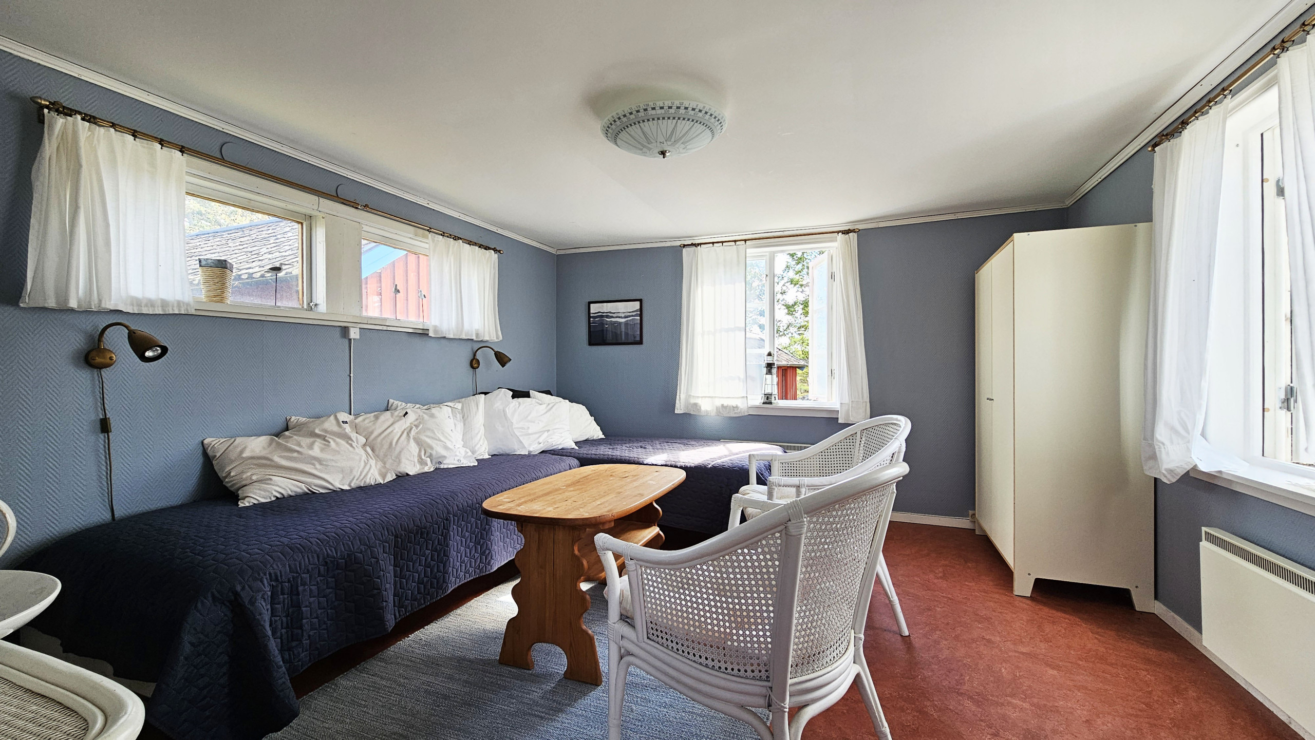 Willkommen in einem klassischen Ferienhaus an der Westküste im malerischen Hälleviksstrand! Hier wohnen Sie in zwei charmanten roten Häusern, die zusammen Platz für bis zu 8 Personen bieten – ideal für eine große Familie oder zwei befreundete Familien. Der abgeschirmte Innenhof bietet Ihnen Ihren ganz privaten Bereich für Spiel, Erholung und gemütliche Abendessen in der Sonne. Das Haupthaus strahlt echtes Sommerflair aus mit seiner gemütlichen Küche, dem Kaminofen und dem offenen Grundriss, in dem Küche und Wohnzimmer ineinander übergehen. Es gibt drei Schlafzimmer: eines mit Doppelbett, eines mit Hochbett und eines mit zwei eingebauten Betten. Ein WC befindet sich im Flur. Das Gästehaus verfügt über einen offenen Grundriss mit kleiner Küchenzeile, Schlafplätzen und einer gemeinsamen Dusche für die ganze Gruppe. Außerdem gibt es einen Essbereich und eine TV-Ecke. Das Grundstück zwischen den beiden Häusern ist von Felsen und den Gebäuden eingerahmt, was eine abgeschirmte Oase schafft, in der Sie sonnenbaden, spielen oder einfach die Ruhe genießen können. Auf der großen Terrasse finden Sie Platz für Loungemöbel und Grillabende. Von hier führt ein kleiner Weg nach Hälleviksstrand, und bevor die Bäume ihre Blätter tragen, können Sie vom Haus aus sogar die Bucht erblicken. Hunde sind willkommen, und auch Kinder fühlen sich hier wohl – mehrere Außenbereiche laden alle Gäste zum Verweilen ein.
