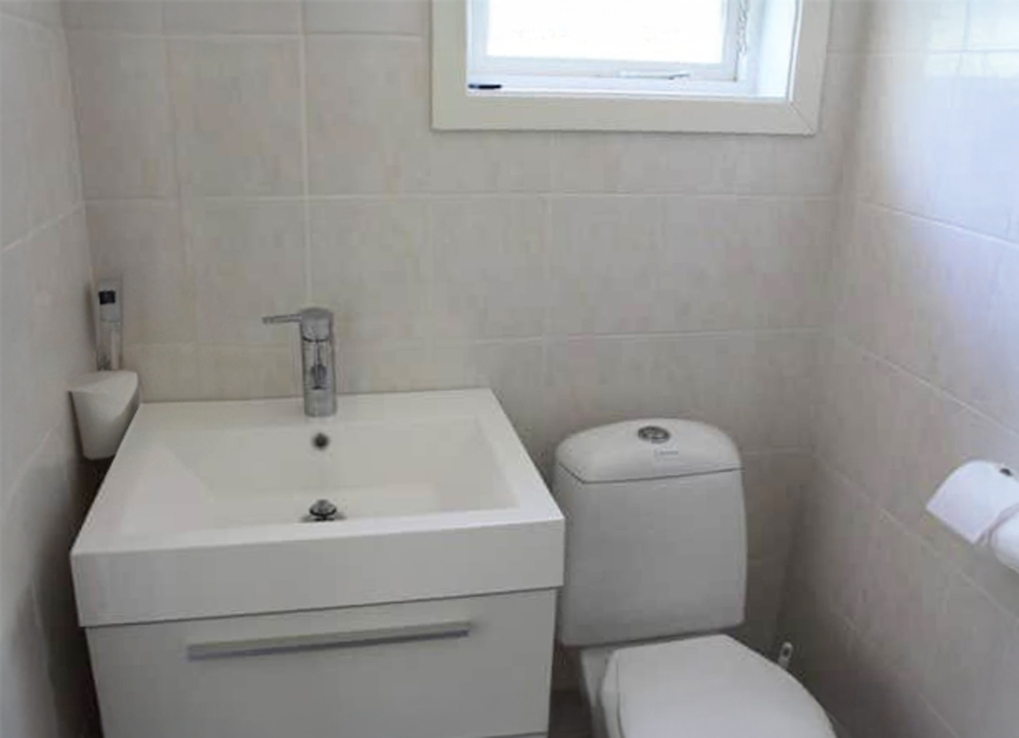 Das größere Haus ist geschmackvoll renoviert und verfügt über ein helles Wohnzimmer mit Schlafsofa, Sesseln und TV sowie eine neue Küche mit Herd, Backofen, Mikrowelle, Kühlschrank und Gefrierschrank. Es gibt zwei Schlafzimmer: eines mit Doppelbett (180 cm) und eines mit Etagenbett (90 cm). Das Badezimmer ist modern gefliest und mit Dusche und WC ausgestattet.