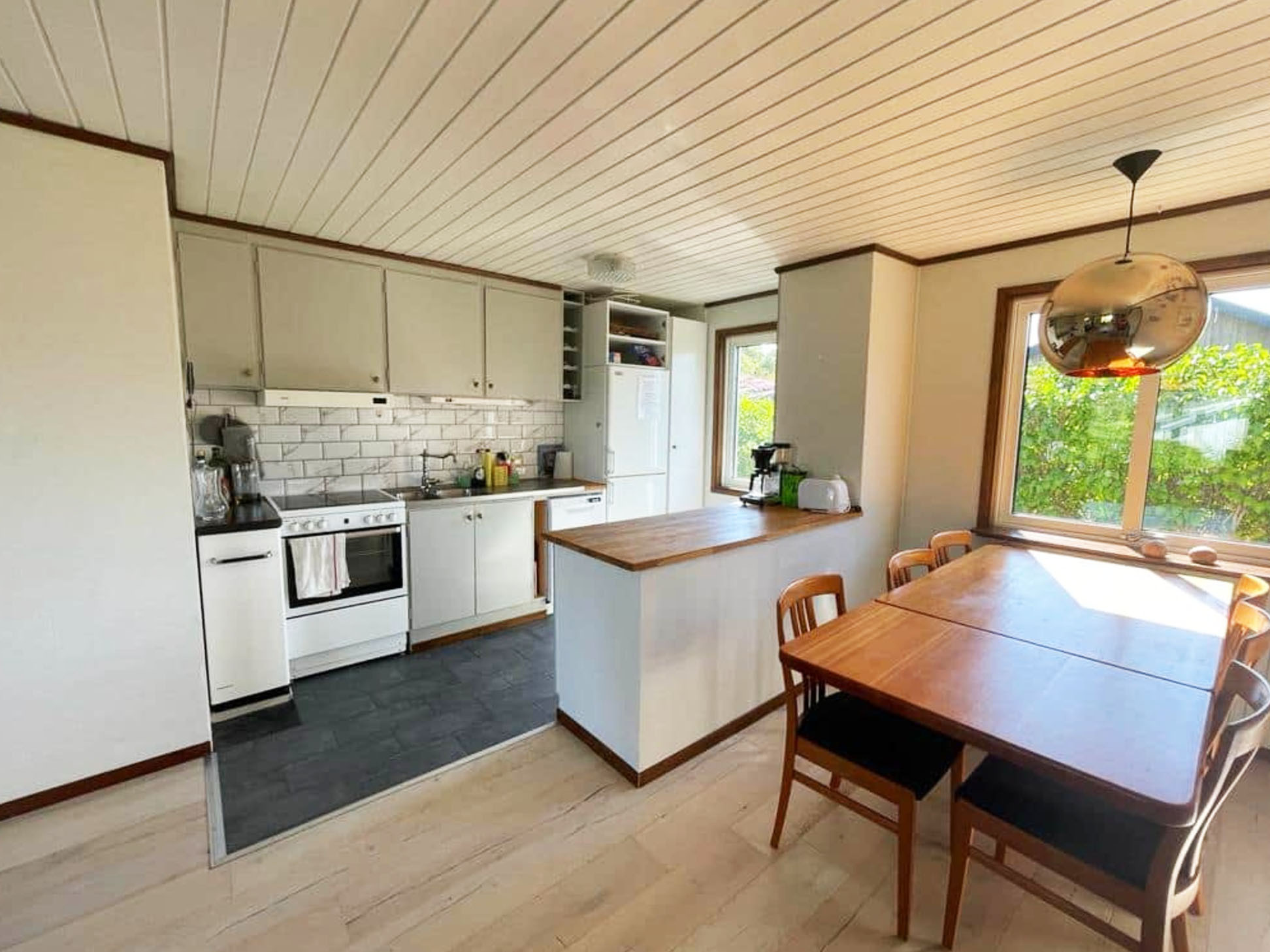 Das Haus bietet Platz für bis zu sechs Personen und verfügt über drei Schlafzimmer: eines mit Doppelbett, eines mit Etagenbett und eines mit Einzelbett. Außerdem gibt es ein Badezimmer mit Dusche und WC, eine gut ausgestattete Küche mit Geschirrspüler sowie zwei Wohnzimmer mit Sofa, Fernseher und Kamin. Der gemütliche Küchenofen und die beiden Kamine schaffen eine behagliche Atmosphäre das ganze Jahr über. Im Untergeschoss befinden sich ein zusätzliches Wohnzimmer und eine Waschküche.