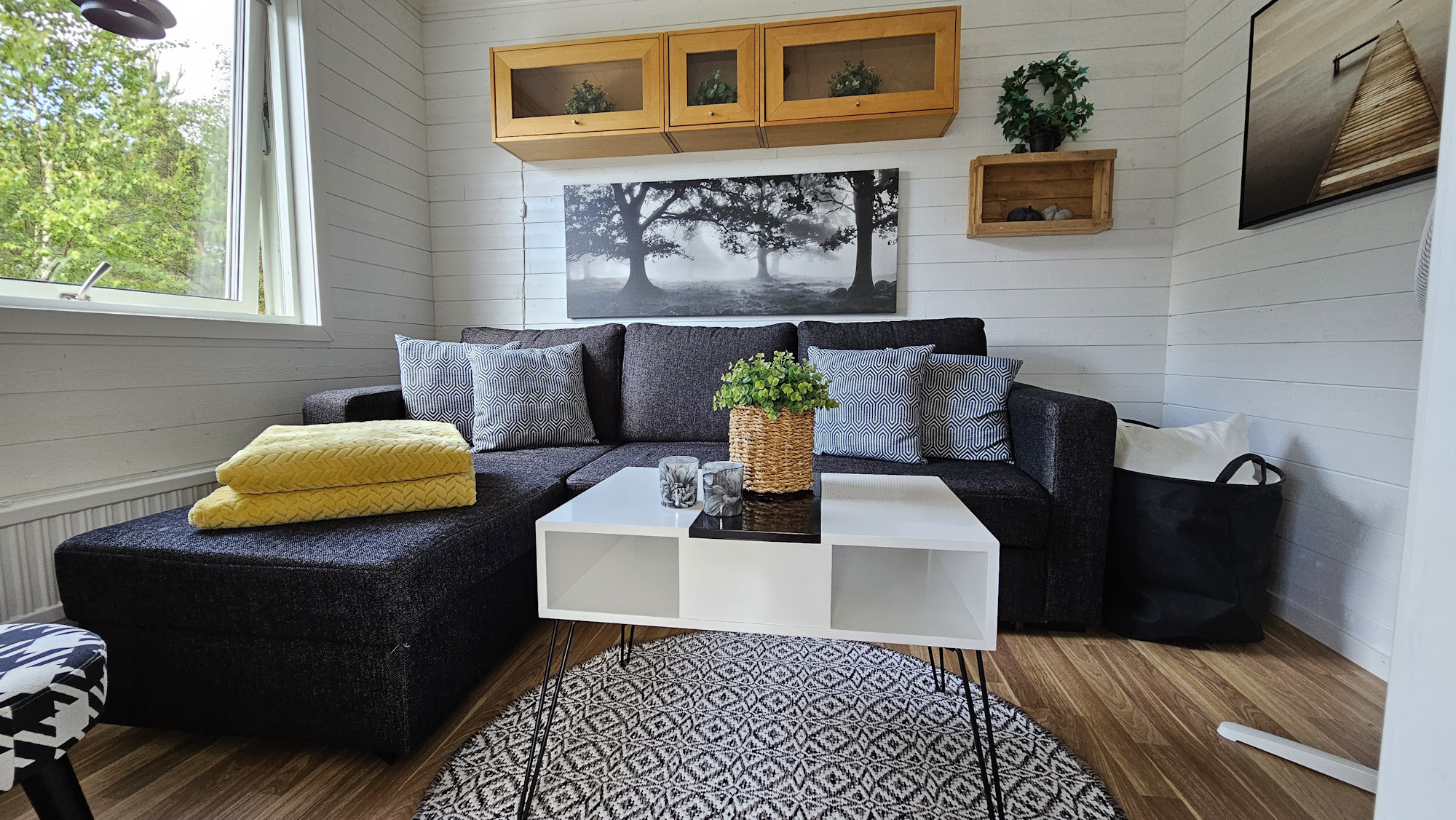 Die Unterkunft bietet Platz für bis zu 4 Personen (+ 1 kleines Kind). Auf dem Schlafboden befindet sich ein bequemes Doppelbett (180 cm) und im Wohnzimmer ein Schlafsofa (180 cm). Für die Kleinsten stehen ein Reisebett und ein Hochstuhl zur Verfügung. Die Küche ist komplett ausgestattet mit Herd, Ofen, Kühlschrank mit Gefrierfach, Mikrowelle und Kaffeemaschine. Das Badezimmer ist modern mit WC, Waschbecken und Dusche. Auf der Terrasse können Sie Grillabende genießen und die schöne Aussicht bewundern – Sonnenliegen gibt es sowohl an der Vorder- als auch an der Rückseite.