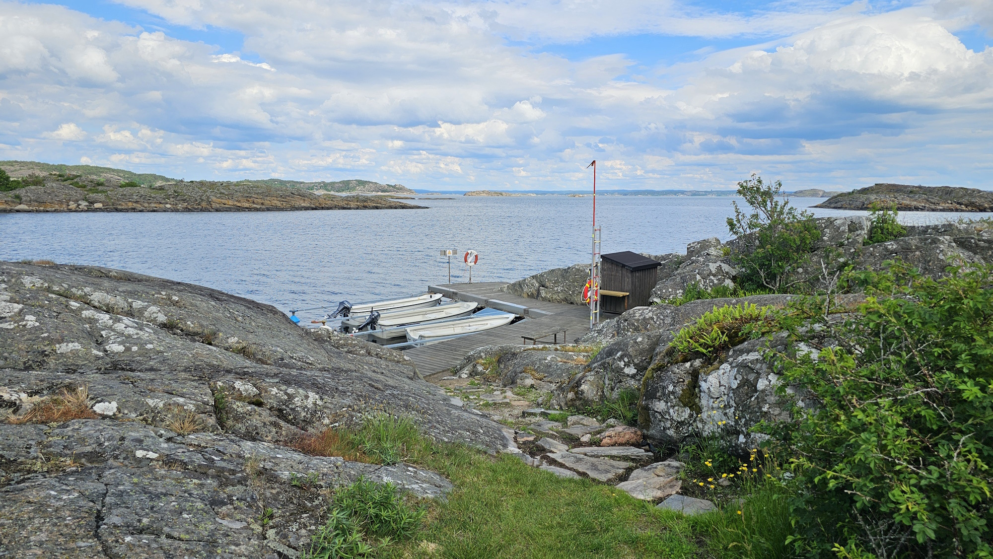 Eine kurze Radtour (ca. 10 Min.) führt Sie nach Rönnäng, einem charmanten Fischerdorf an der Südspitze von Tjörn. Hier können Sie gutes Essen direkt am Wasser genießen, entlang der Stege spazieren oder die Fähre zu den autofreien Inseln Åstol, Dyrön und Tjörnekalv nehmen – perfekt für Tagesausflüge. Für Wanderfreunde ist der Weg hinauf zum Tjörnehuvud sehr empfehlenswert, von wo aus Sie einen atemberaubenden Blick über den Marstrandsfjord haben.