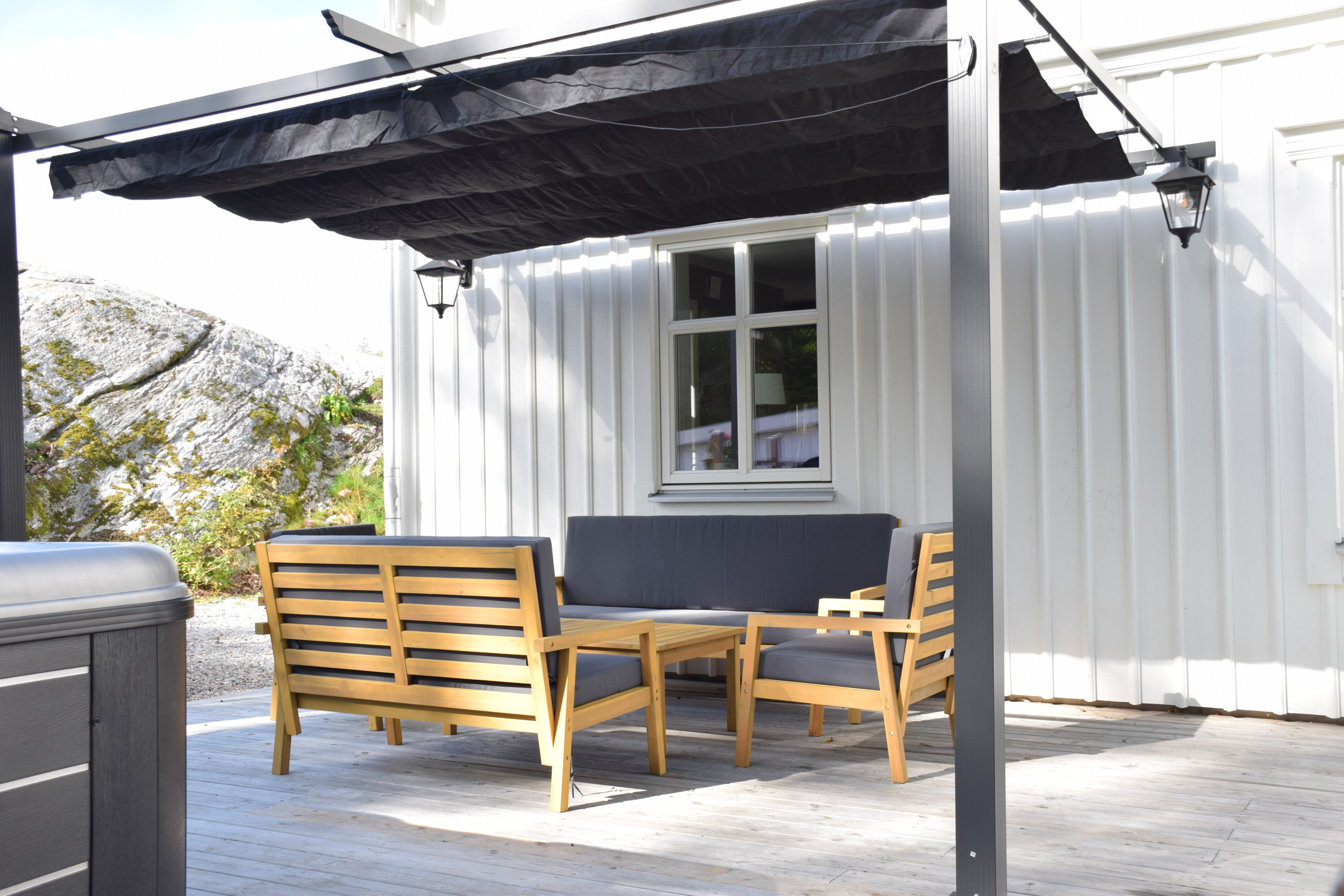 Willkommen in einer modernen und frischen Villa im ruhigen Küstenort Slussen auf Orust. Hier wohnen Sie komfortabel mit viel Platz drinnen und draußen – perfekt für Familien und größere Gruppen, die Komfort, Qualität und die Nähe zu Meer, Natur und Aktivitäten suchen. Das Haus ist stilvoll eingerichtet und bietet großzügige Gemeinschaftsbereiche, einen offenen Grundriss sowie einen wärmenden Kamin im Wohnzimmer. Im Obergeschoss befinden sich vier helle Schlafzimmer: zwei mit Doppelbetten und zwei mit Familienetagenbetten, insgesamt 8 Betten sowie die Möglichkeit für zwei zusätzliche Schlafplätze. Außerdem gibt es ein gemütliches Wohnzimmer mit TV und zwei moderne Badezimmer, eines auf jeder Etage. Auf der Rückseite des Hauses erwartet Sie eine große Terrasse mit viel Platz für gemeinsame Abende. Genießen Sie die Außendusche, entspannen Sie im Jacuzzi und verbringen Sie gemütliche Grillabende im Sonnenuntergang. Parkplätze befinden sich direkt vor der Tür und das Haus bietet eine Waschmaschine, WLAN und Apple TV für einen angenehmen Aufenthalt.