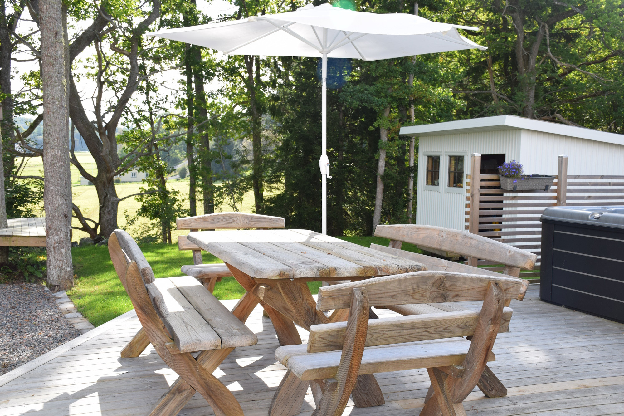 Genießen Sie Natur, Badevergnügen und lokale Erlebnisse direkt vor der Haustür. Nur wenige Gehminuten vom Haus entfernt liegt der See mit Badestelle und Felsen – ideal für Kinder und Erwachsene. In der Nähe befindet sich auch der Badestrand Slussens, mit Steg, Sprungturm und Umkleidekabinen. Von hier aus erreichen Sie leicht die Ålgårds Mühle, wo Sie Kajaks mieten und die Buchten und kleinen Inseln erkunden können.