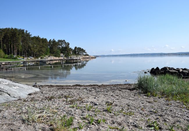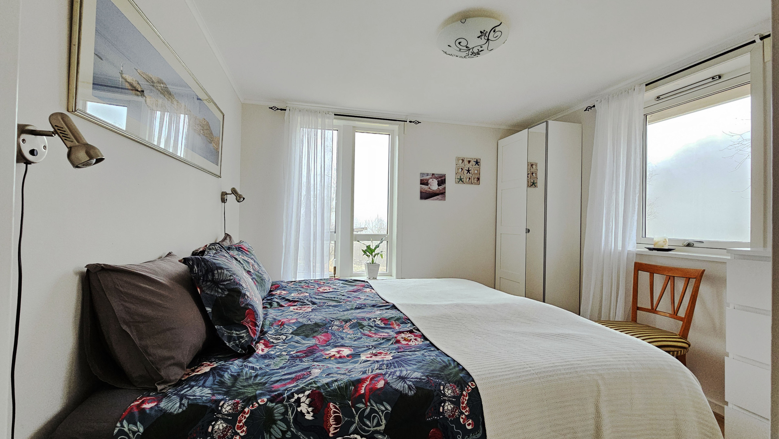 Welcome to this bright and well kept cottage on the south eastern tip of Tjörn, featuring a lovely terrace and only 500 metres from the sea and a natural bathing area. Here you stay in a cosy and thoughtfully designed home with 4 plus 1 beds, perfect for a couple or a small family looking for peace, closeness to nature and refreshing salty swims. Built in 2013, the cottage offers 45 sqm plus a charming sleeping loft. From the entrance at the back you step directly into the open plan kitchen and living area in a light and fresh style. There is a small sofa bed for one person, TV screen (Please note: no TV channels are available. Use your own device for streaming.) and a wood burning stove for cosy evenings. The fully equipped kitchen includes stove, oven, microwave, extractor fan, fridge, freezer, coffee maker, kettle and toaster. The dining table seats five. The bedroom has a 180 cm double bed with full mattress topper. The loft has two 90 cm beds and is accessed by ladder, therefore not suitable for small children. The tiled bathroom includes WC, shower, washbasin and washing machine. From the living room you step out onto the spacious terrace with outdoor furniture and charcoal grill. A small lawn in front of the house invites to games and relaxation. Parking for two cars. Pets possible upon request.