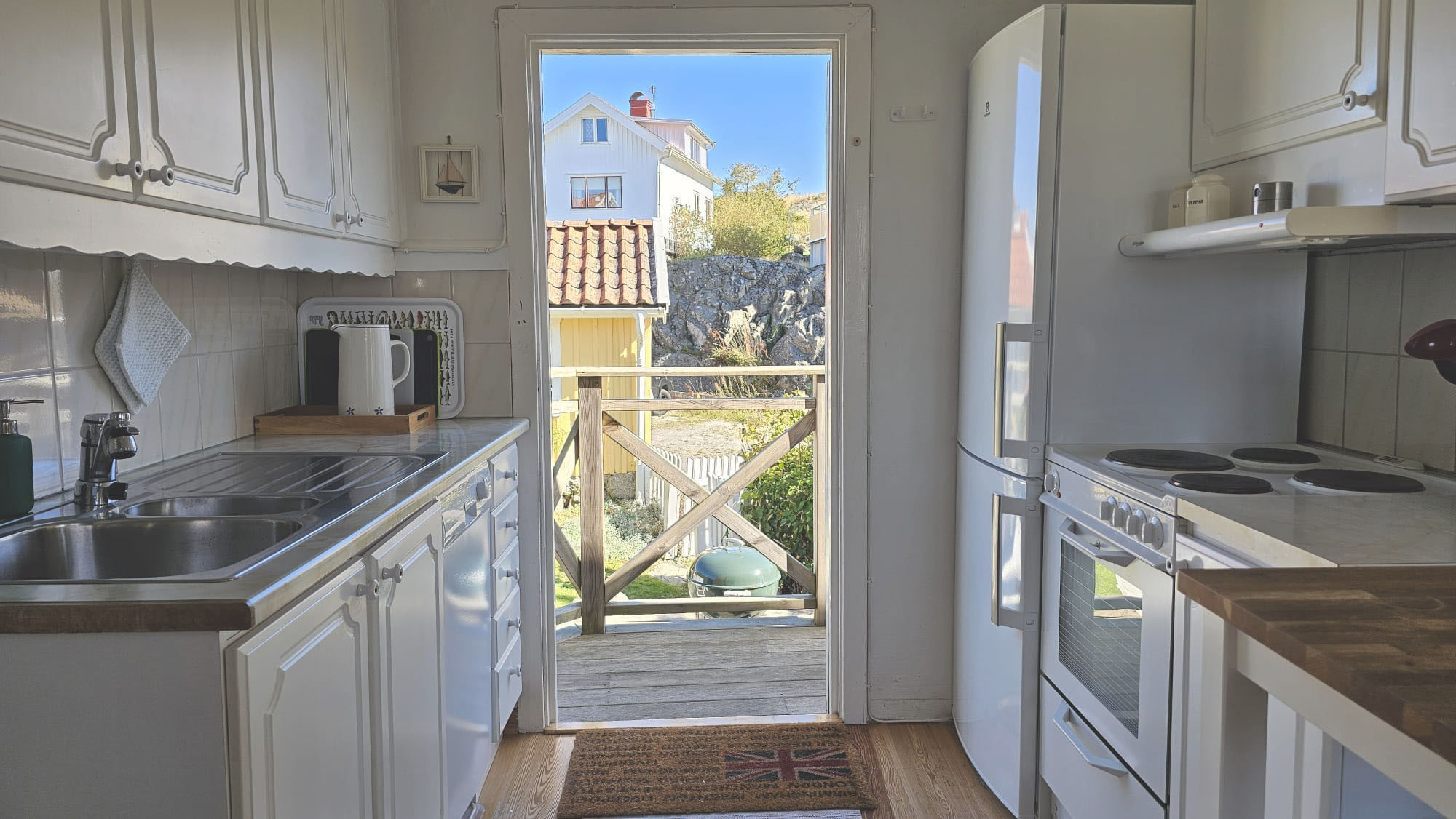 From the house, it’s a short walk to beaches, cliffs, and piers – a paradise for both children and adults. The area offers great fishing, scenic coastal walks, and beautiful nature. In Ellös, you’ll find a grocery store and restaurant within walking distance. For day trips, Henån and Mollösund are close by. Discover Bohuslän’s charming coastal villages, hike in nature reserves, visit Pilane sculpture park, or take a boat trip in the archipelago.