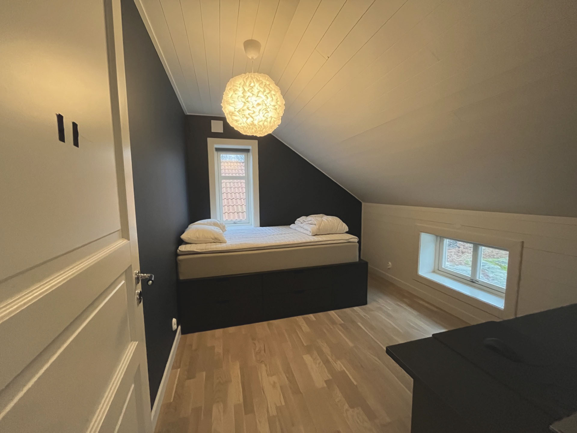 Welcome to this charming holiday home located in a quiet and sunny setting, close to both the forest and the sea. Here you’ll stay comfortably with space for up to 8 guests, divided between three bedrooms and a living area. The house offers a large, child-friendly garden with plenty of room for outdoor play and several terraces where you can enjoy the sun from morning to evening. Inside, you’ll be met by a warm and homely atmosphere. On the ground floor there’s a well-equipped kitchen with a dining area, a spacious living room with dining table, sofa group and TV with basic channels and Chromecast. There are also two bedrooms and a bathroom with shower. Upstairs you’ll find another bedroom, a sofa bed, a small workspace and an additional toilet. In the basement there’s both a washing machine and a tumble dryer – perfect for longer stays. From the house, a scenic path through the forest leads down to Kungsviken’s bathing area, where you’ll find a sandy beach, jetties, a diving tower and shallow water for the little ones. The house is also a great choice for families with dogs – pets are welcome.