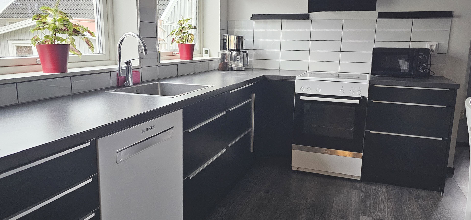 The modern kitchen is equipped with a dishwasher, induction hob, oven, microwave, fridge/freezer, coffee maker, kettle and toaster – everything you need for a comfortable holiday. The tiled bathroom includes a shower, toilet, as well as a washing machine and tumble dryer. Fiber internet, Chromecast, and Smart TV are available.