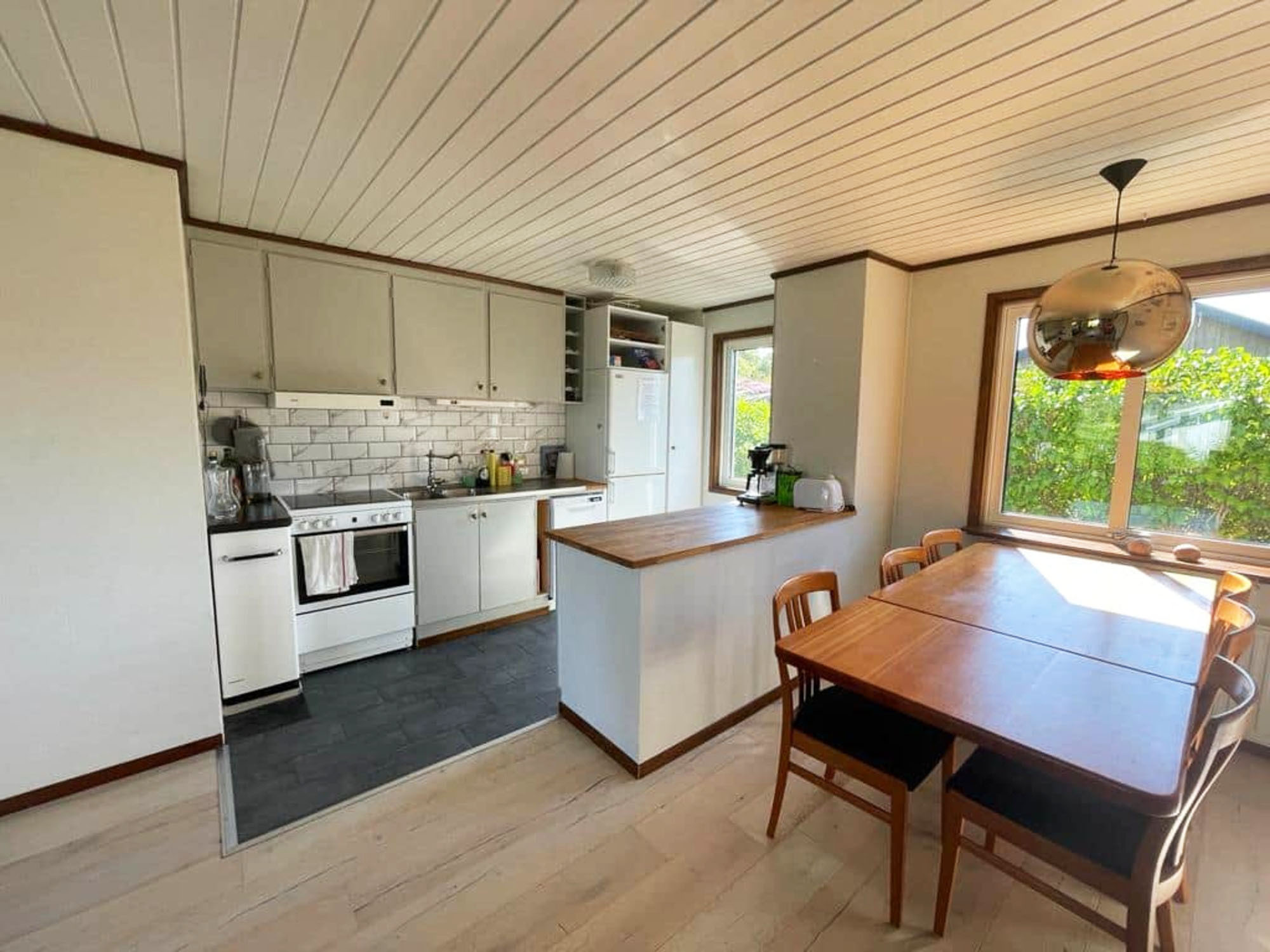 The spacious garden invites you to relax or play a game of kubb or badminton. In the evening, enjoy the beautiful sunset over Stigfjorden. The nearby natural beach is calm and mostly visited by locals, perfect for swimming or crab fishing.