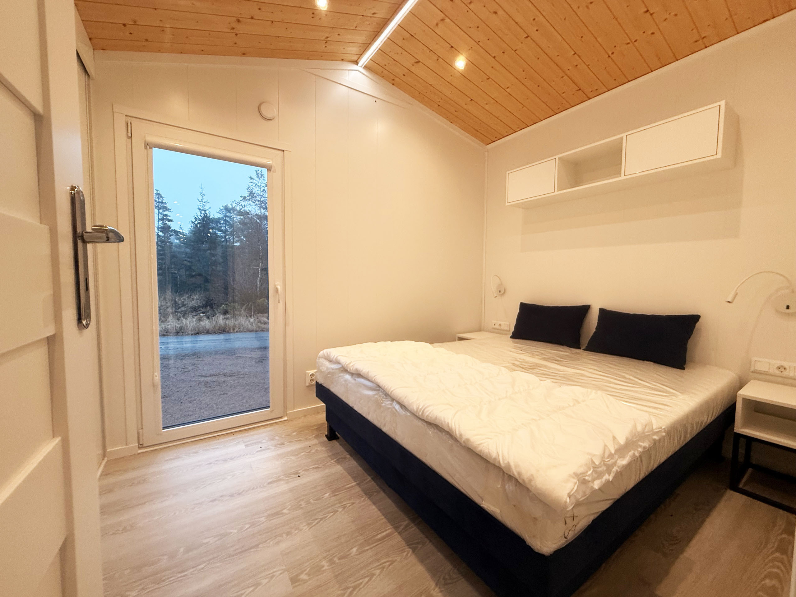 Welcome to a brand new holiday home, perfect for a relaxing stay for up to 4 people. The accommodation has two bedrooms, one with a double bed and one with a single bed, as well as a sofa bed in the living room. There is a fresh bathroom with shower and a fully equipped kitchen with bar stools and seating. The house is located directly adjacent to the forest and has a fantastic view of both the forest and meadow. For extra comfort, there is a staircase up to a lovely terrace on the roof. Outside there is a paved patio with a barbecue and garden furniture, perfect for relaxing in nature.