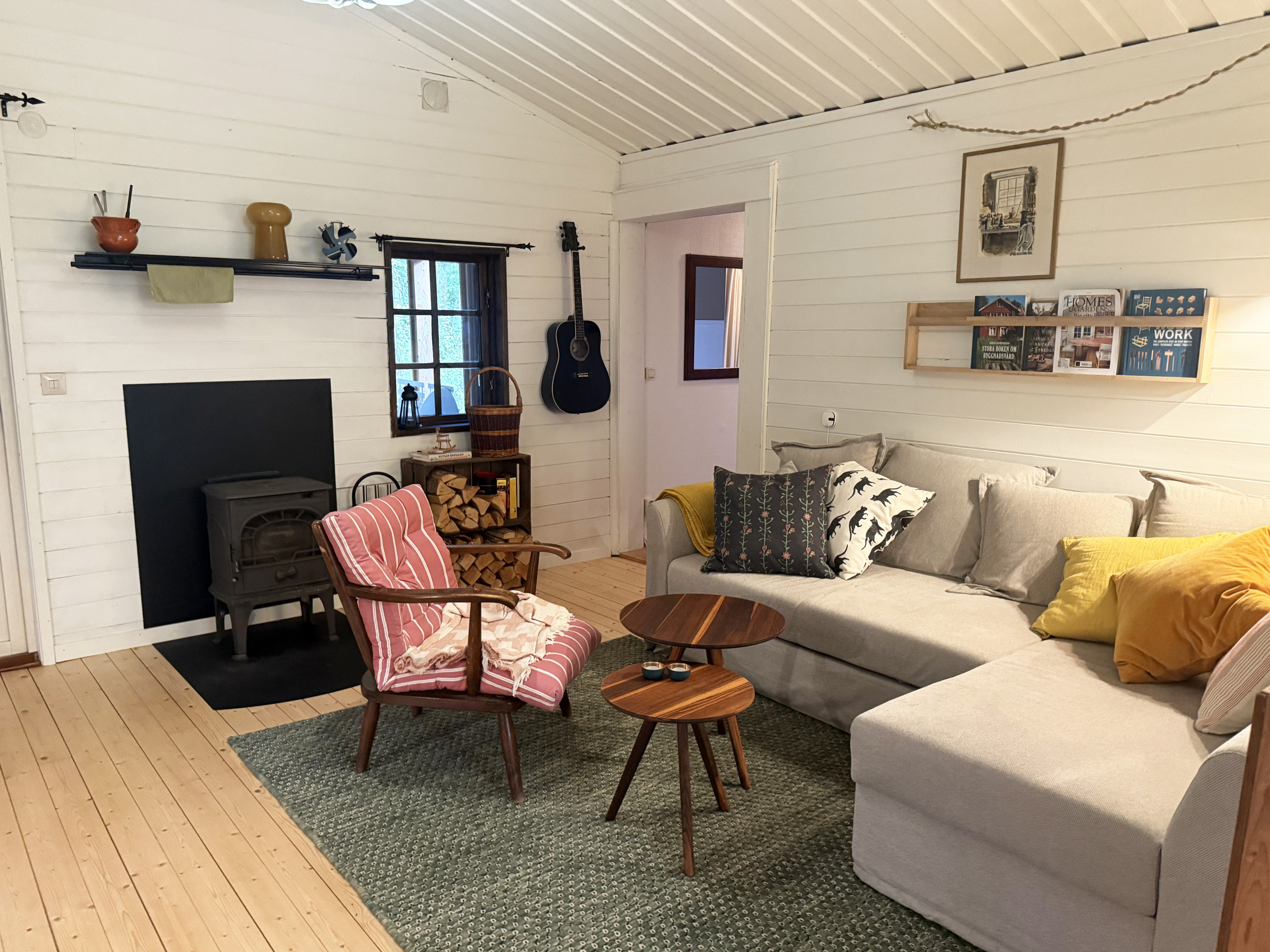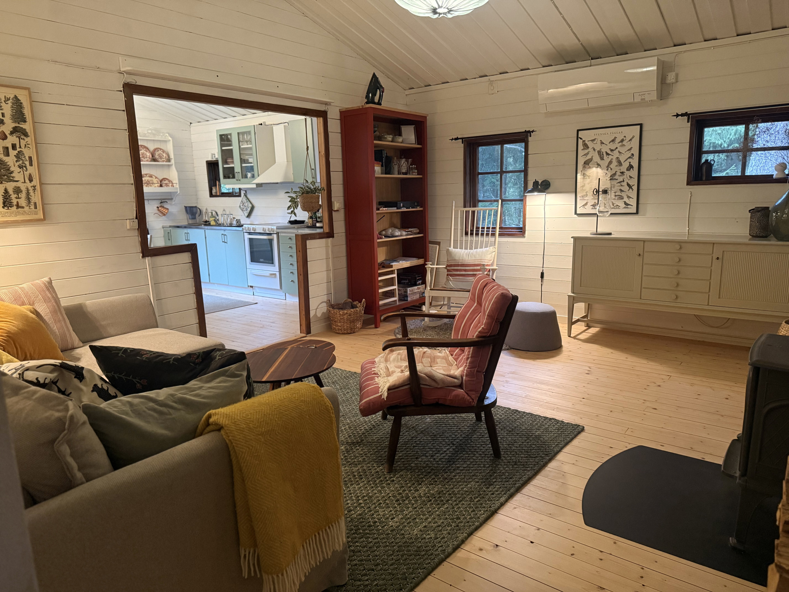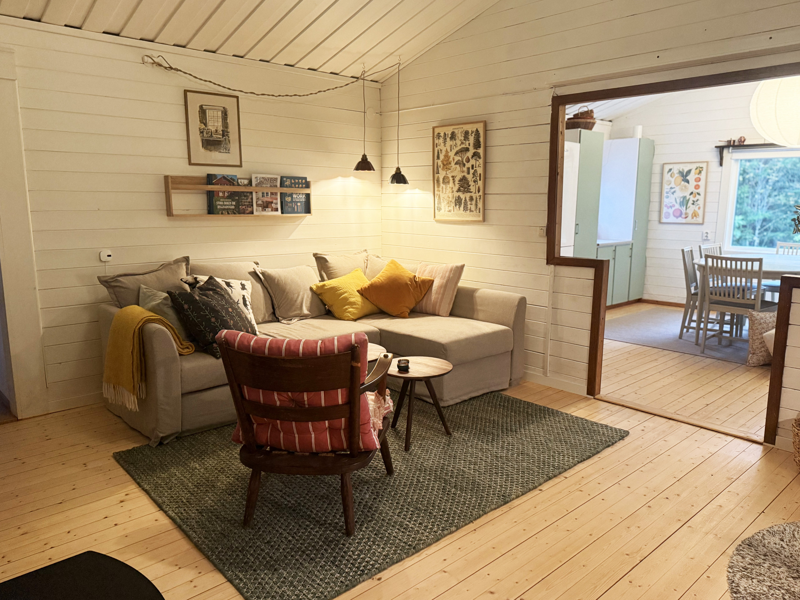 The cottage offers two cozy bedrooms - one with a comfortable double bed and one with a practical sofa bed for two people. In the living room there is another sofa bed for two people. There is a fresh toilet in the house, the shower is outdoors but offers hot water. The spacious kitchen invites you to share meals and long breakfasts, while the living room creates space for quiet relaxationfamily games in the peaceful evening light. Here you will have the perfect base for both relaxation and adventure.