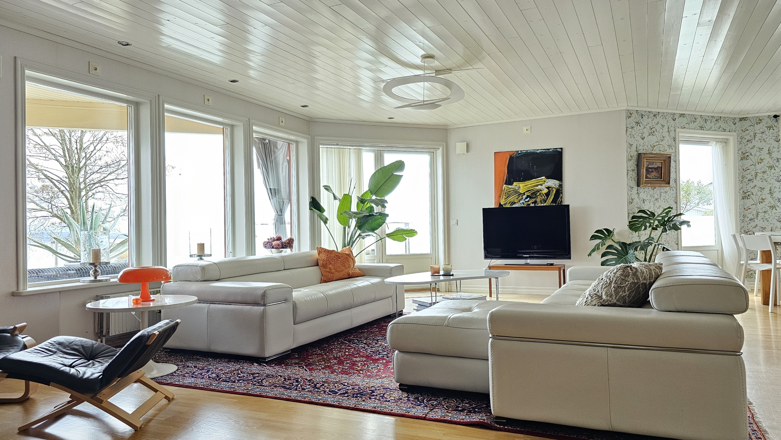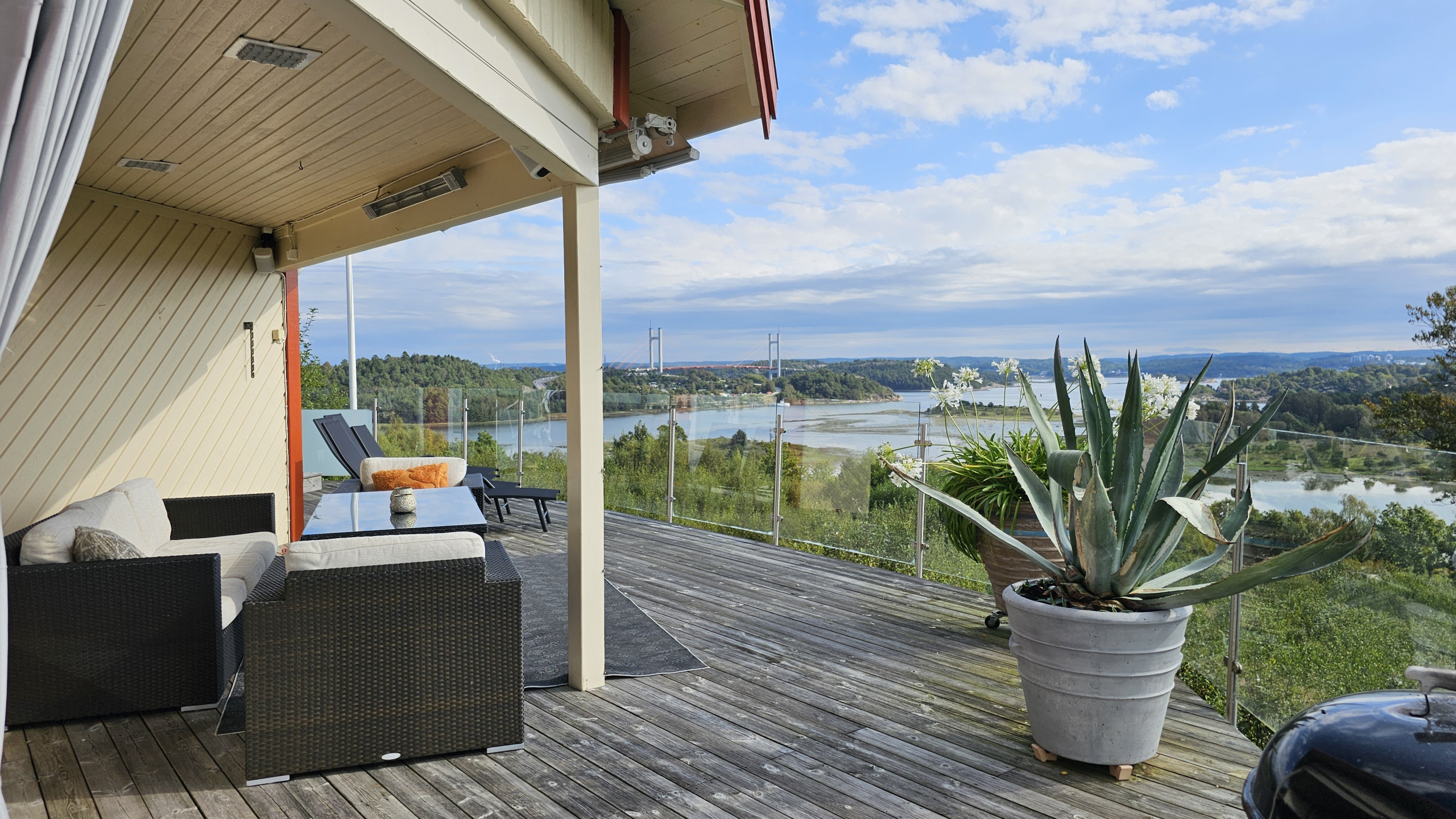 Welcome to this bright and well-designed holiday home in beautiful Myggenäs on the island of Tjörn. The house comfortably accommodates up to 10 guests, divided over four bedrooms and generous living areas. From both the living room and bedrooms you can enjoy a breathtaking sea view, and the large glass-railed terrace quickly becomes the favourite spot for relaxing and enjoying long summer evenings.