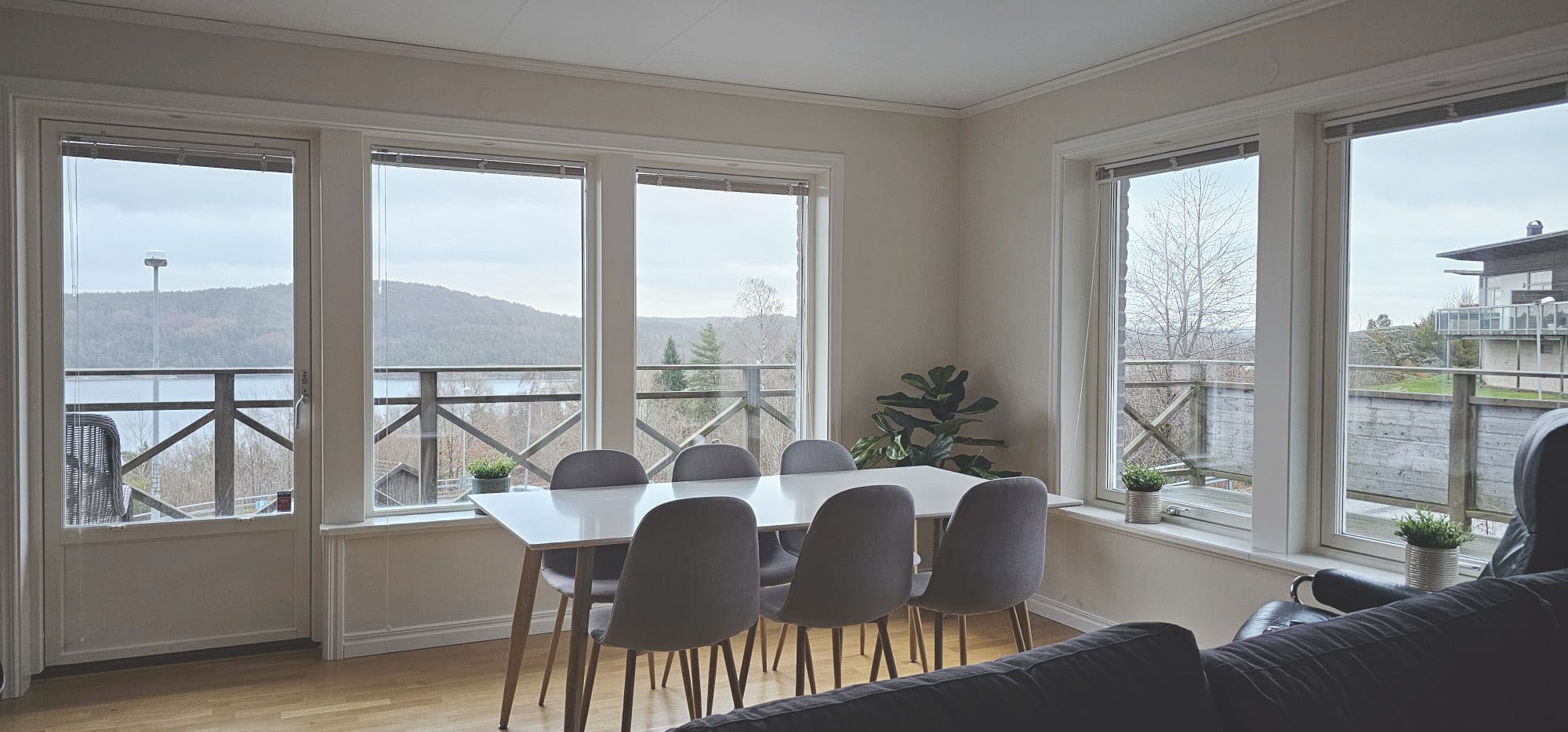 Welcome to this spacious house with a lovely view of the fjord, just 400 metres from the sea and a family-friendly bathing area. The house is situated high on a slope at the end of a quiet cul-de-sac – perfect for families and friends seeking relaxation, nature and proximity to local amenities. The house offers comfortable accommodation for up to 10 guests on 170 m² across two floors, with several social areas and flexible sleeping arrangements.