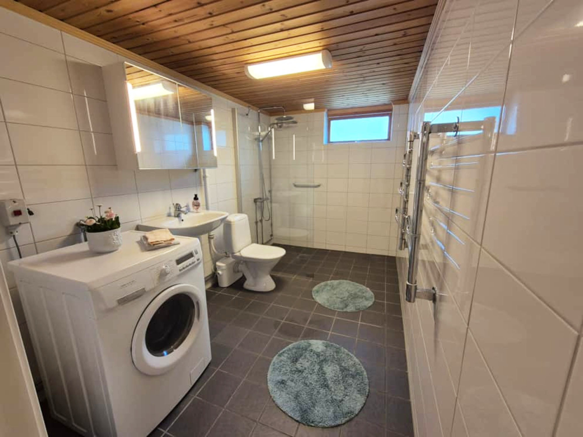The house is tastefully furnished and offers up to 6 beds (4+2) divided into one bedroom with a double bed and a loft with two single beds and a sofa bed. The bright kitchen has everything you need for a comfortable stay, including a dishwasher, microwave, stove, oven, and fridge/freezer. On the entrance floor, you’ll also find a fresh bathroom with shower and washing machine. The loft has a sofa, TV with Apple TV, and speakers – an ideal spot for cozy evenings.