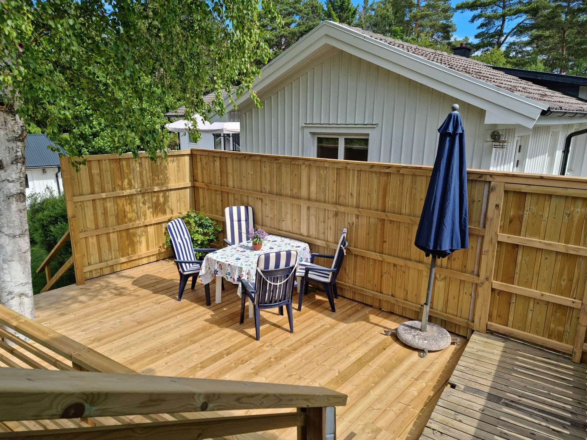 Outdoors, there are two lovely seating areas – one covered and one by the gable of the house – where you can enjoy your morning coffee or a barbecue in the evening sun. The large plot (approx. 2000 m²) is framed by dramatic Bohuslän cliffs and soft greenery – perfect for children to play, nature lovers, and relaxation. Three parking spaces are available on the plot, and the house is pet-friendly, so your dog is also welcome.