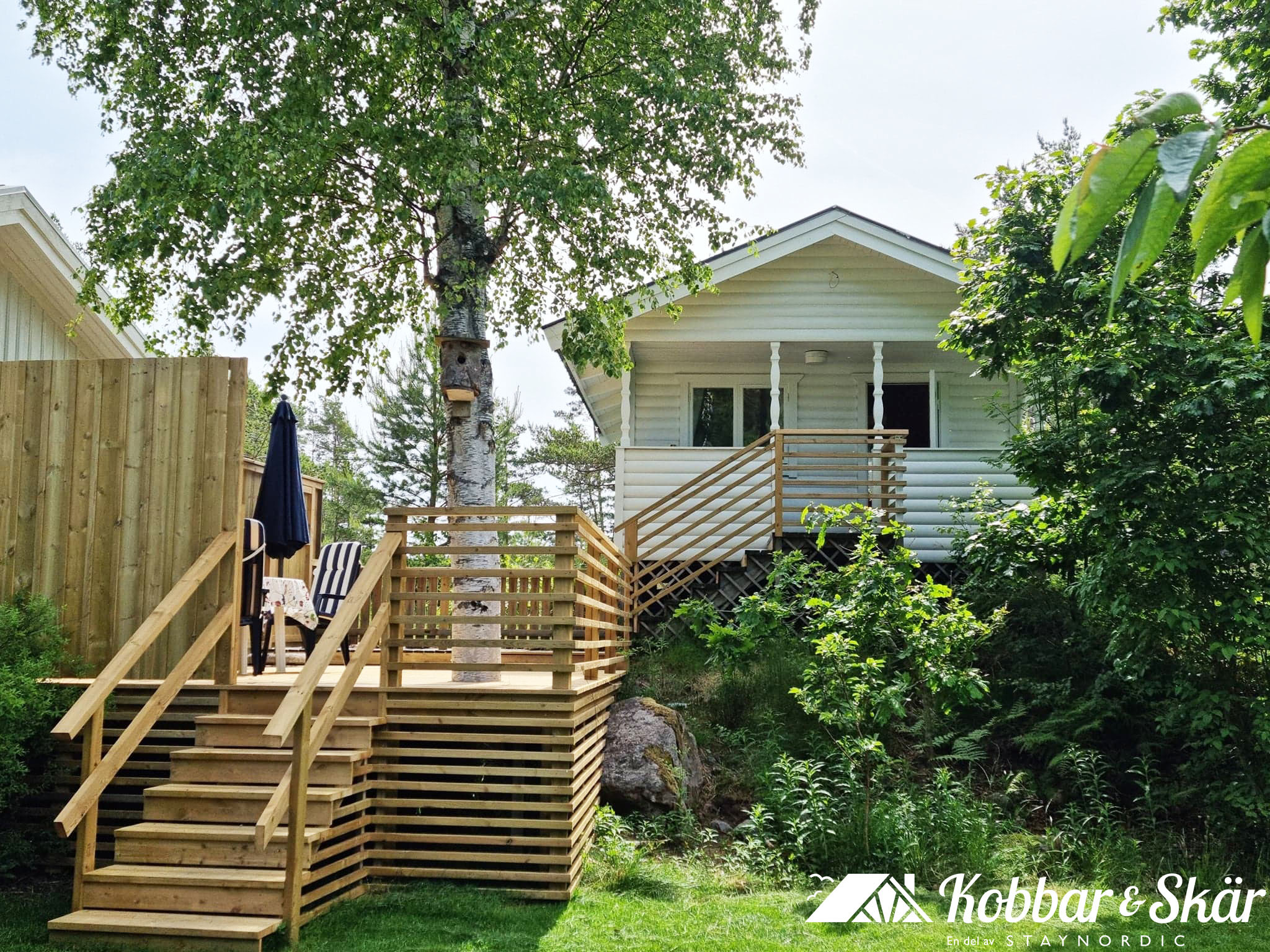 Welcome to this charming little cottage on Rossö, a peaceful peninsula in southern Orust located between Orust and Tjörn. Here you live close to nature with the sea within walking distance and several lovely swimming spots nearby. The cottage accommodates four people and offers a simple yet cozy stay with a kitchenette, toilet, shower, Wi-Fi and TV with basic channels. The spacious terrace is furnished with outdoor furniture, a grill and a parasol, perfect for sunny breakfasts or relaxing barbecue evenings. The lawn below is ideal for playing kubb or other outdoor games. Dogs are welcome upon request. Rossö is part of a nature reserve with beautiful flora and rich birdlife. You can walk through forests and meadows, swim from the cliffs or take your bikes and explore the surroundings. The sea and rocks are about 400 metres away, and the small beach with jetty is about 700 metres from the cottage. During the low season, the cottage can also be rented monthly at a favourable rate.