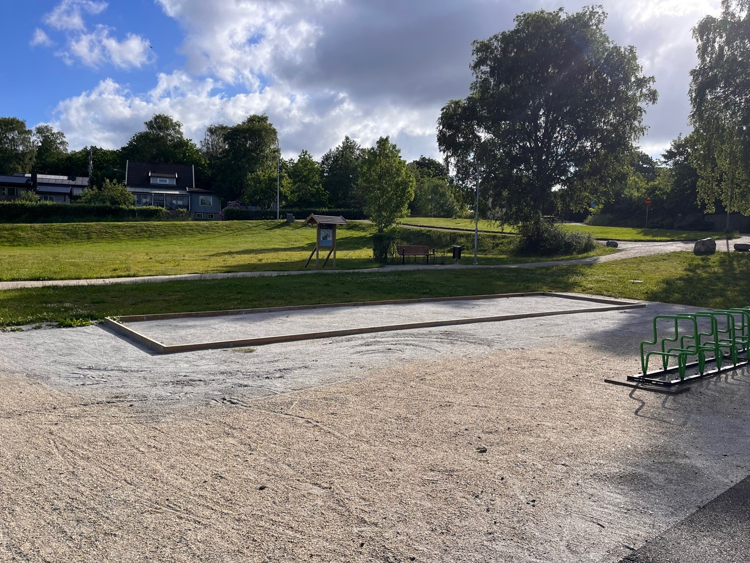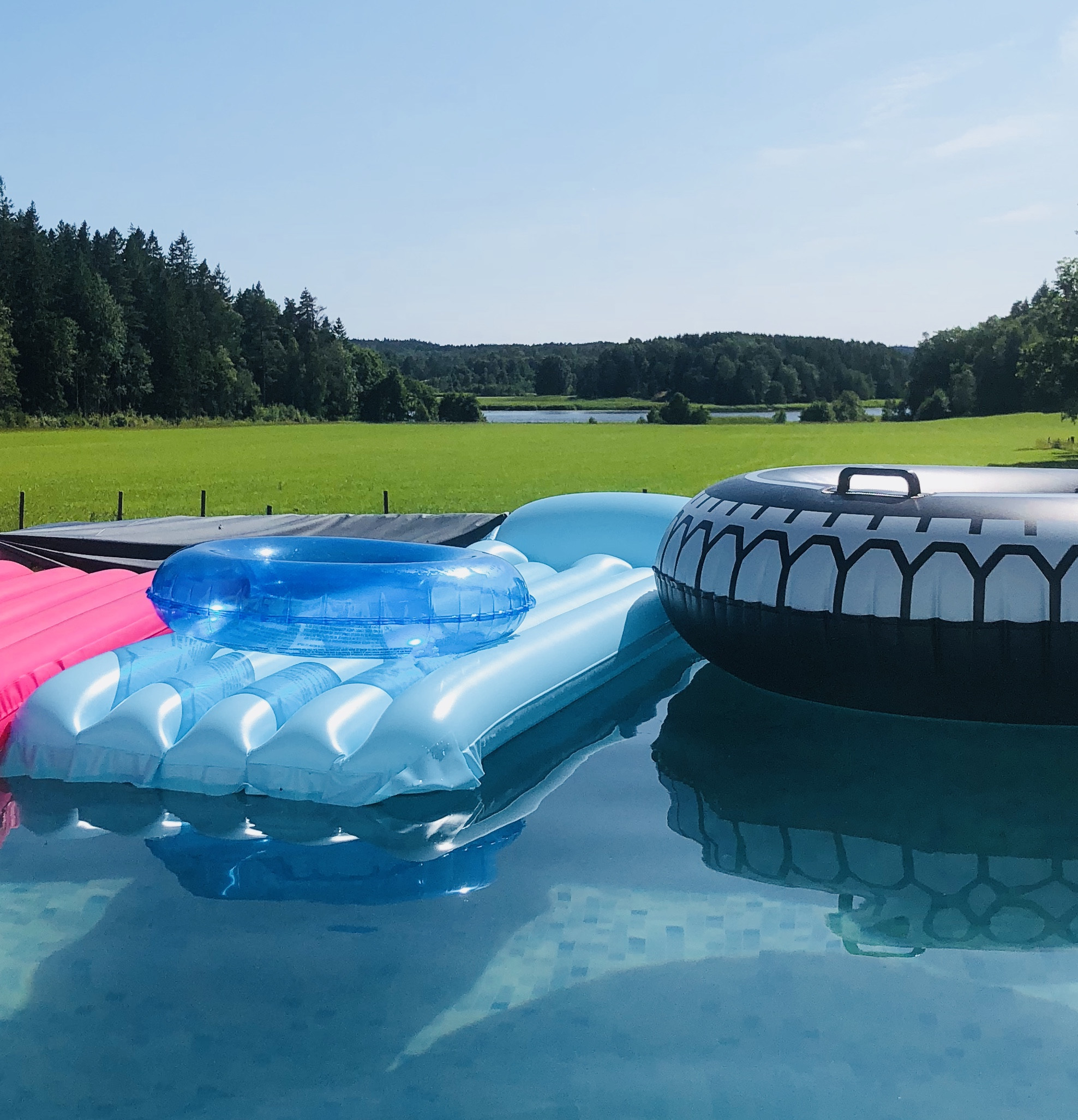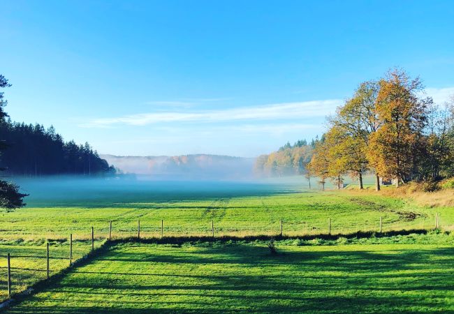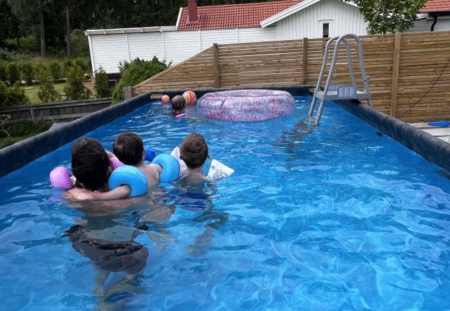 Outside, you’ll find a heated above-ground pool – perfect for sunny summer days – as well as swings, a slide, a playhouse, lounge furniture and both a charcoal and a gas grill. The fenced lawn makes it safe for children to play freely. From the terrace, you can enjoy panoramic views of meadows, forests and Lake Kollungeröd – a peaceful setting surrounded by nature.
