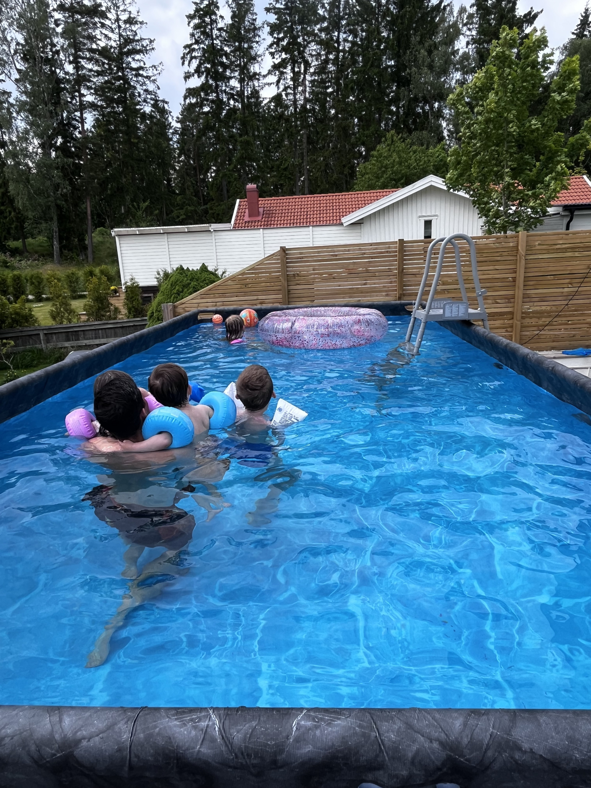 • The above-ground pool is heated, but the temperature (20–30°C) may vary depending on the weather and if the cover is used overnight.