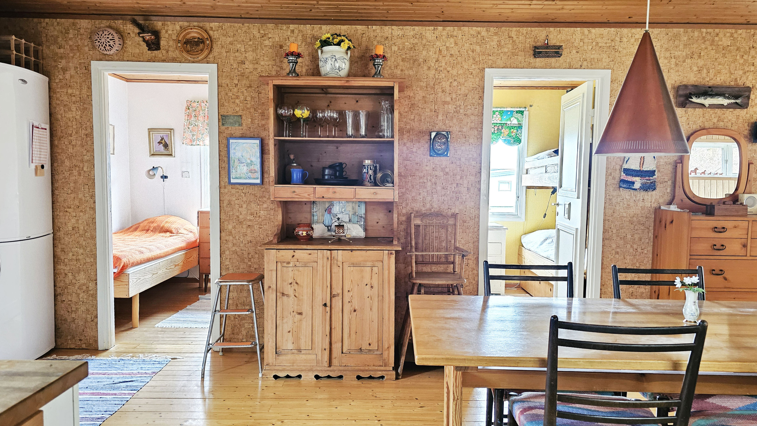Välkommen till ett charmigt och trivsamt hus i Svanesund på Orust, med plats för upp till 5 personer. Här bor ni i ett hemtrevligt boende med klassisk sommarstugekänsla och endast cirka 300 meter till havet. Huset har en öppen och social planlösning där kök och matplats ligger i anslutning till varandra. Köket är fullt utrustat med bland annat diskmaskin och här finns allt ni behöver för att laga måltider under semestern. Intill ligger matplatsen med gott om utrymme för gemensamma middagar. Vardagsrummet har en bekväm soffgrupp och TV, perfekt för lugna kvällar efter en dag vid havet. En eldstad finns också och bidrar till en extra mysig atmosfär under svalare dagar. Boendet har två sovrum samt en soffa i vardagsrummet som är okej för barn att sova i. Ett av sovrummen har två enkelsängar och det andra har en våningssäng (obs. våningssängen är 180 cm lång). Badrummet är utrustat med dusch. Utomhus finns en altan med trädgårdsmöbler och grill, perfekt för långa sommarkvällar. Den stora tomten ger gott om utrymme för både lek och avkoppling. Här bor ni i ett lugnt område med närhet till både bad, natur och fina promenadstråk. För den som gillar att fiska finns goda möjligheter i närheten.