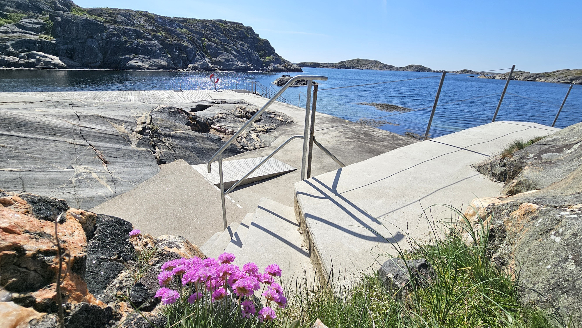 Tomten mellan stugorna ramas in av berg och husen själva, vilket skapar en avskild oas där ni kan sola, leka eller njuta av lugnet. På den stora altanen finns plats för både loungemöbler och grillkvällar. Härifrån leder en liten stig mot Hälleviksstrand, och innan löven slagit ut kan man skymta viken från huset. Hundar är varmt välkomna och här finns plats även för de yngsta gästerna, ett barnvänligt och hundvänligt boende med flera uteplatser för alla att njuta av.