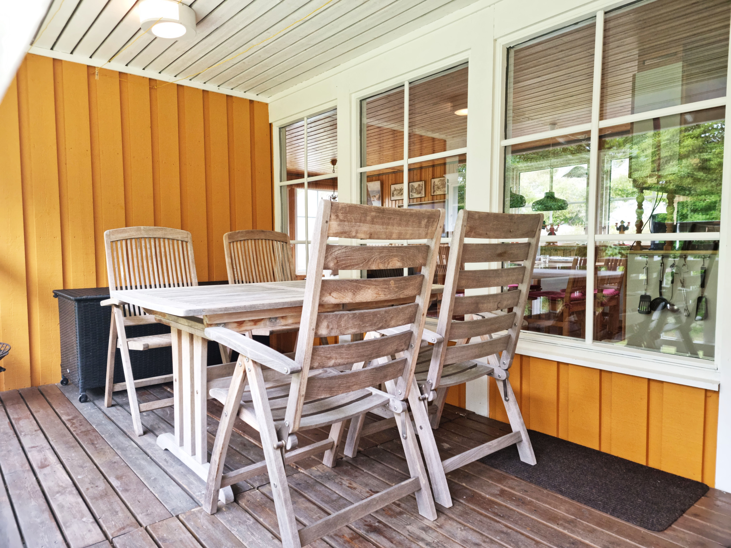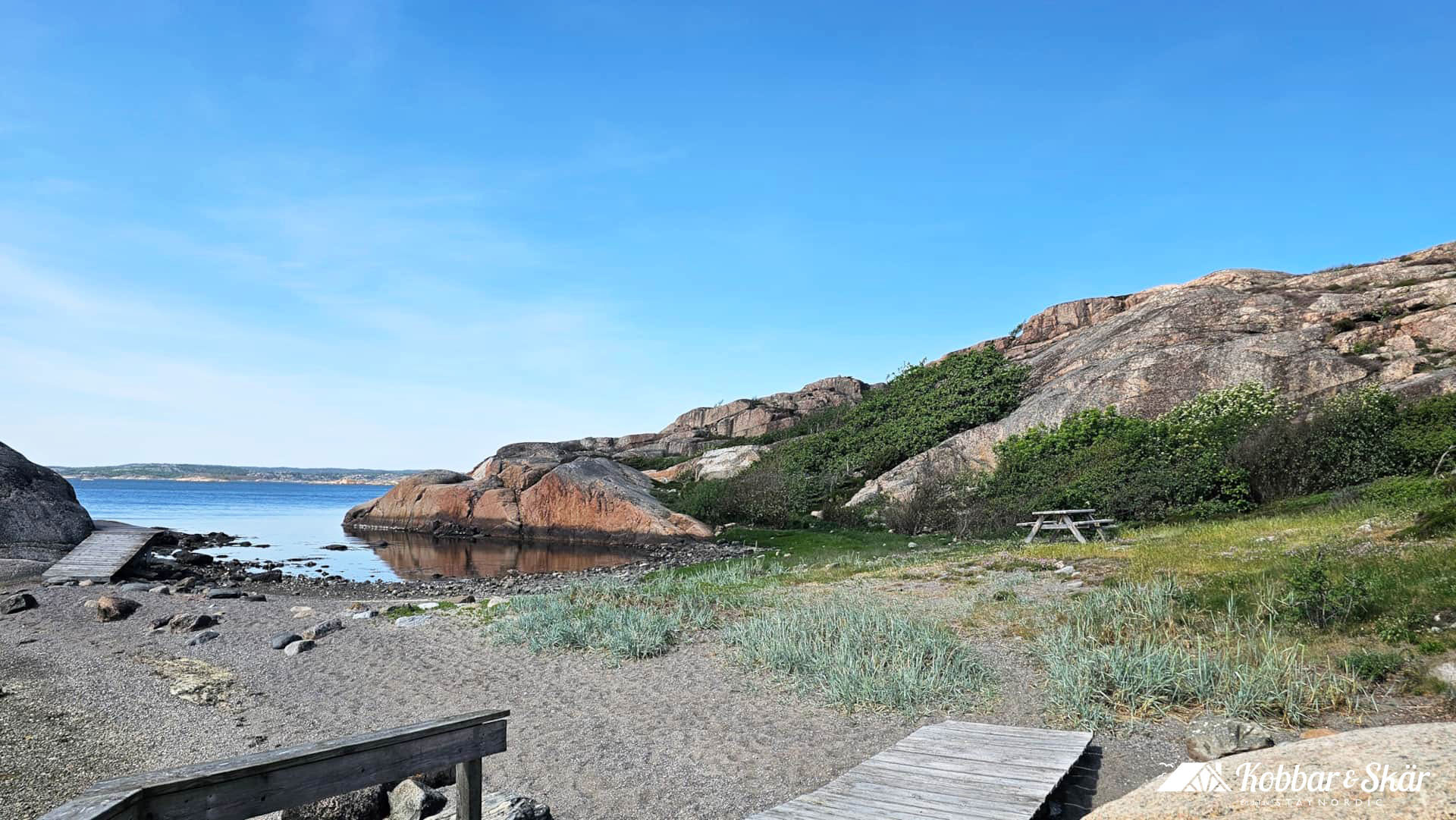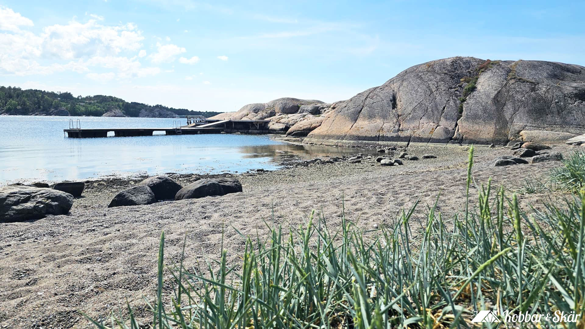 Utomhus väntar tre fina uteplatser, varav två under tak, och en liten lekstuga som barnen kommer att älska. Tomten ligger insynsskyddad och bjuder på sol större delen av dagen. För de som vill njuta av havet finns en badplats och småbåtshamn endast 800 meter bort, och möjlighet att låna båtplats för mindre båt. Här finns allt för en rofylld och härlig semester i vacker bohuslänsk natur.