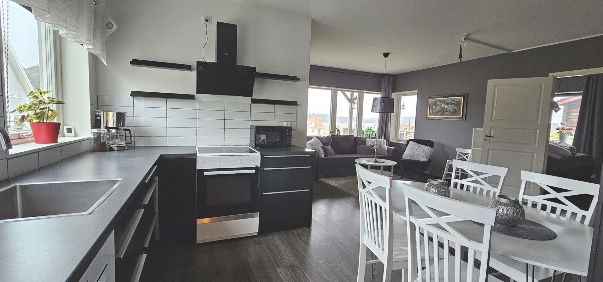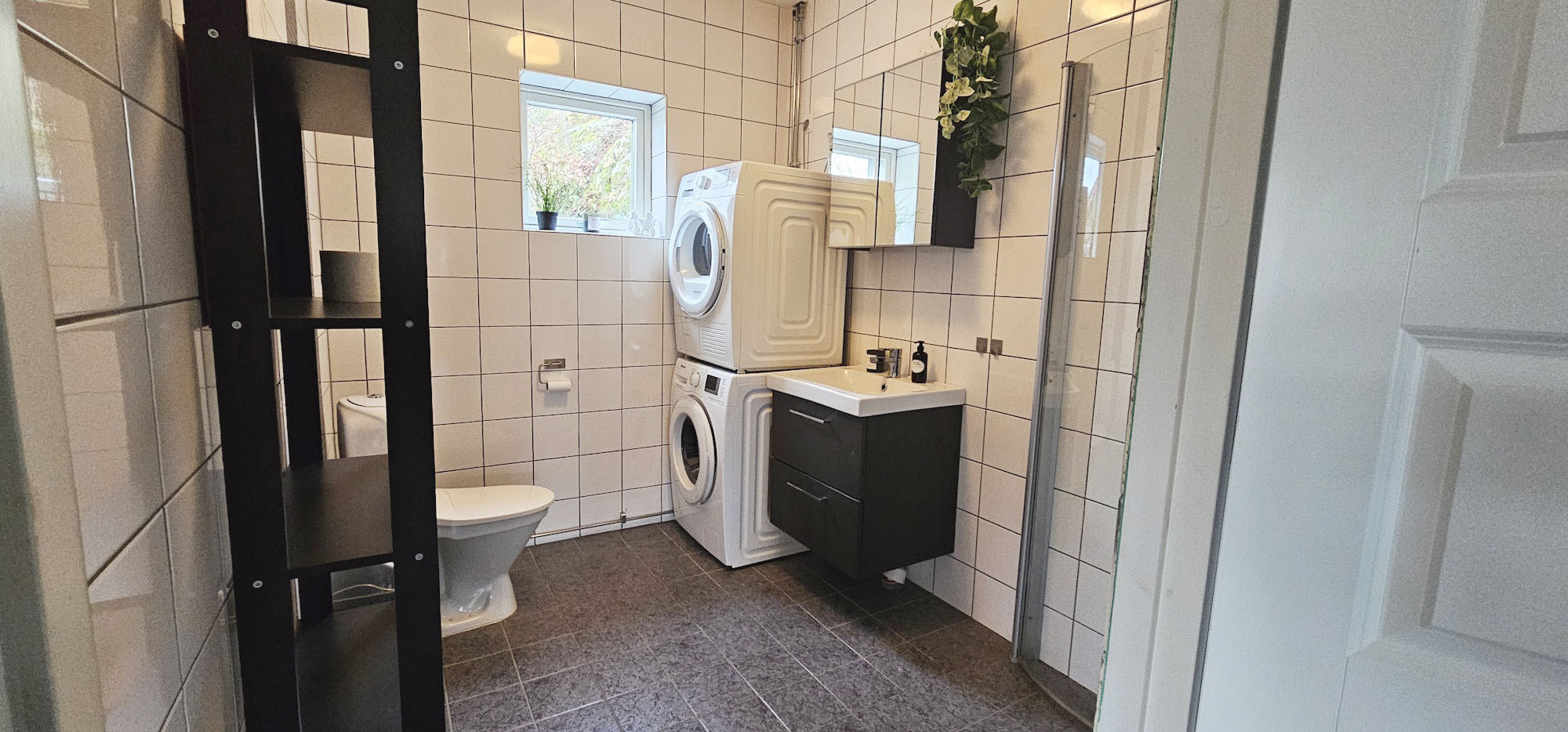 Det moderna köket är utrustat med diskmaskin, induktionshäll, ugn, mikro, kyl/frys, kaffebryggare, vattenkokare och brödrost – allt du behöver för en bekväm semester. Badrummet är helkaklat och har dusch, WC samt både tvättmaskin och torktumlare. Fiber, Chromecast och Smart-TV finns tillgängligt.