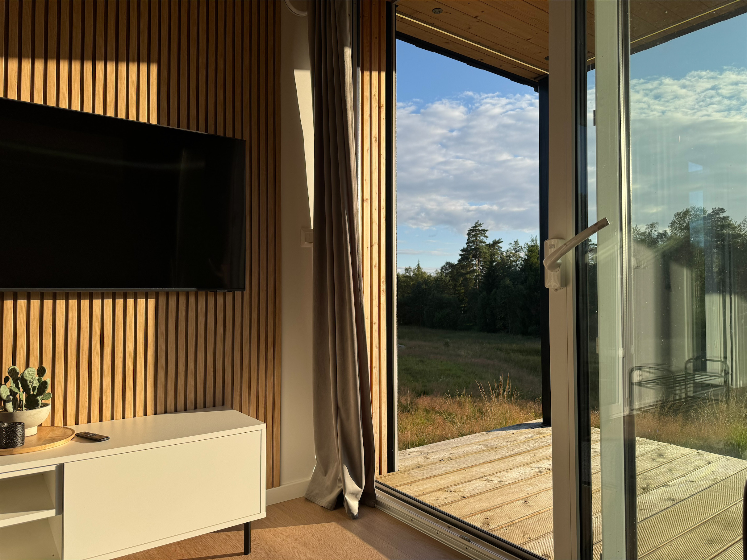 Välkomna till ett helt nybyggt semesterboende, perfekt för en avkopplande vistelse för upp till 4 personer. Boendet har två sovrum, ett med dubbelsäng och ett med enkelsäng, samt en bäddsoffa i vardagsrummet. Det finns ett fräscht badrum med dusch och ett fullt utrustat kök med matbord för 4 personer. Huset ligger i direkt anslutning till skog och har en fantastisk utsikt över både skog och äng. Mindre terrass för härliga sommarkvällar. Utanför finns även en stenlagd uteplats med grill och trädgårdsmöbler, perfekt för avkoppling i naturen