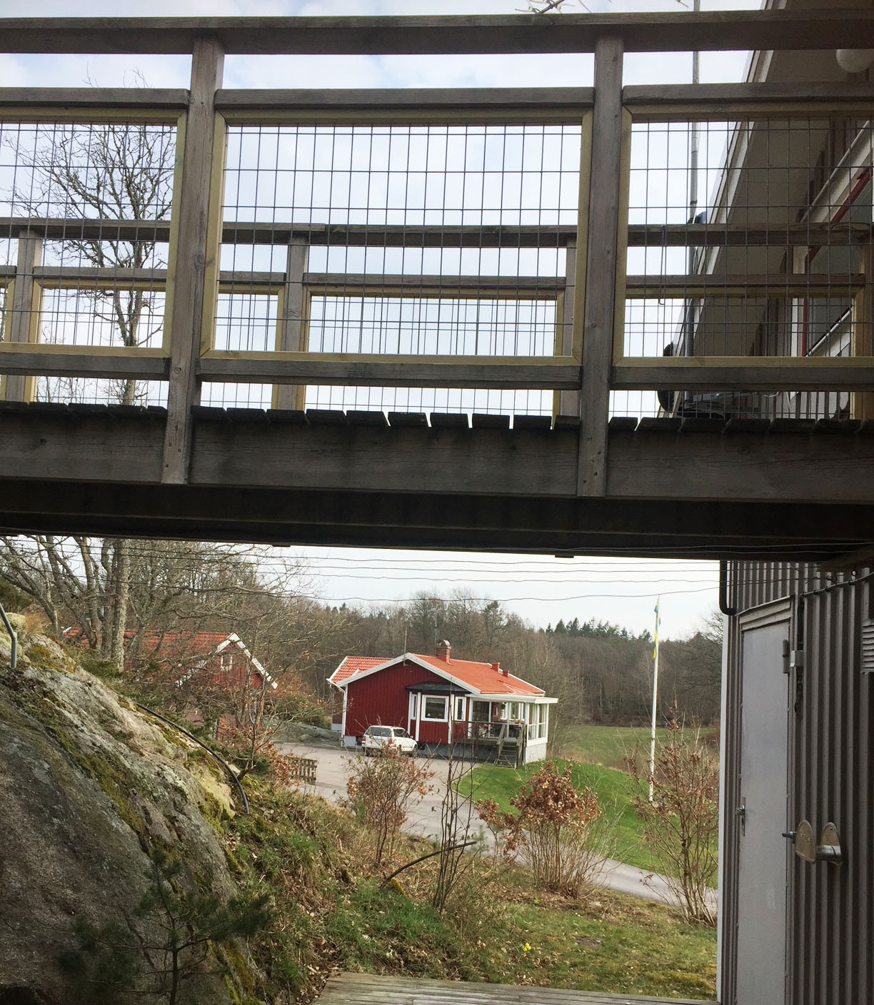 På övervåningen finns två sovrum i öppen planlösning, ett med dubbelsäng och bäddsoffa samt ett med två enkelsängar. Från övervåningen når ni bron som leder direkt ut mot berget, en perfekt plats att njuta av morgonkaffet eller kvällssolen. Utomhus finns en stor altan med grill och utemöbler där ni kan koppla av i rofylld miljö.