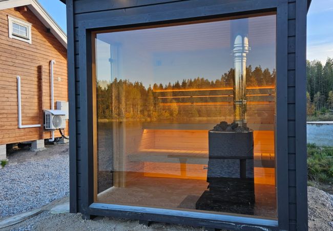 Nybyggd timmerstuga med bastu belägen på en sjötomt utanför Hultsfred | SE05086